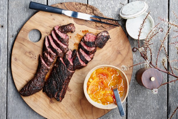 Try spiced and grilled hanger steak with citrus chutney. Peden & Munk
